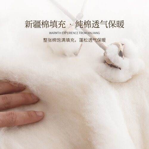 选用新疆长绒棉,手工棉被,新棉现做,天然保暖被芯;全方位填充,紧密贴合、蓬松饱满,久用不易板结。