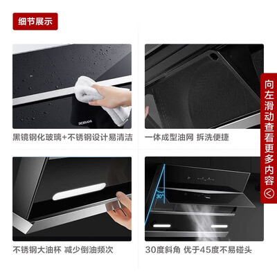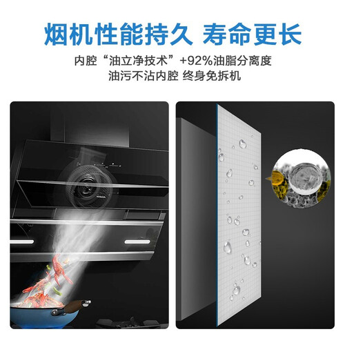 采用大风压设计,高楼层也能快速走烟不倒灌,宽屏拢烟设计,覆盖范围广,油烟不扑面。