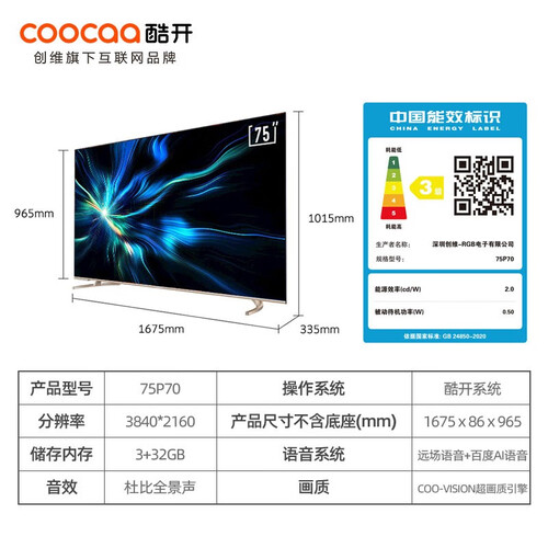 酷开 P70 全面屏电视