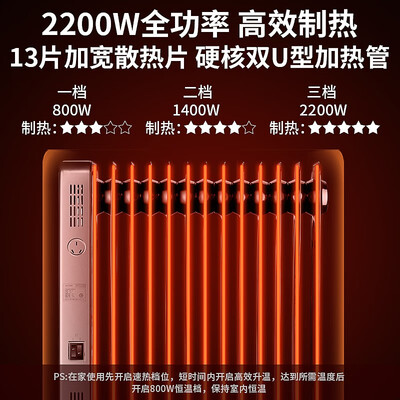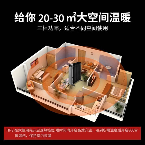 为了热透每个角落,采用13片加宽散热片,配合高效双管发热,可实现360度立体环绕聚能,让房间整体升温舒适不干燥。