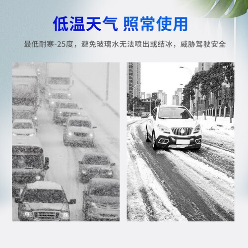 能够适应冬季低温,-25℃不结冰,避免威胁驾驶安全。采用中性配方设计,不会腐蚀金属、塑料,不堵喷头、不伤胶条。