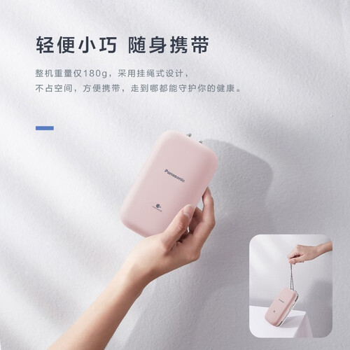 轻便小巧机身设计,整机仅有180g,搭配挂绳式设计,方便随身携带,随行守护你的健康。环绕式进风口,除味更快捷。