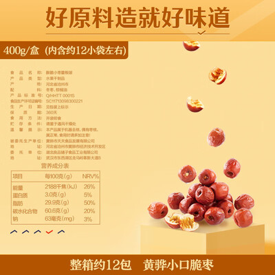 选用先进的设备去除枣核,吃起来方便卫生,免去了去枣核的困扰。脆冬枣采用小包装设计,出门携带都很便捷。