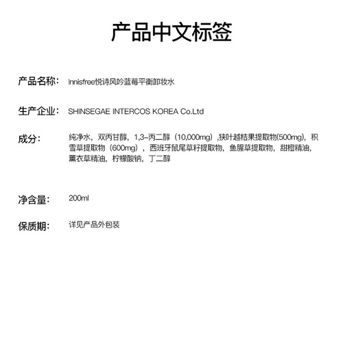 悦诗风吟 蓝莓平衡 卸妆水