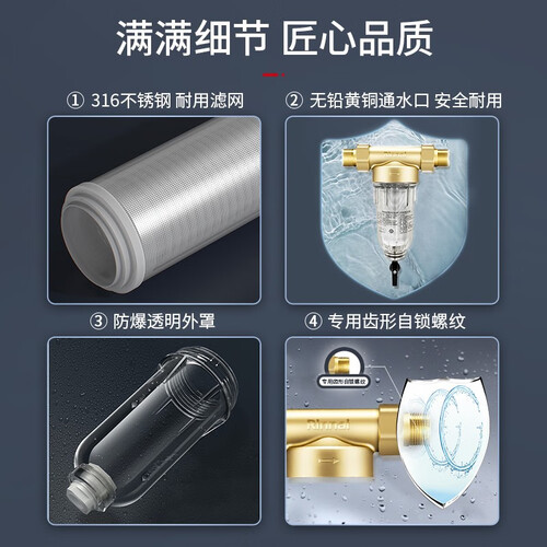 滤芯采用免更换设计,使用期间再也不需要隔三差五地的频繁更换。通水口为结实耐腐蚀的黄铜材质制作,不含铅更安全。