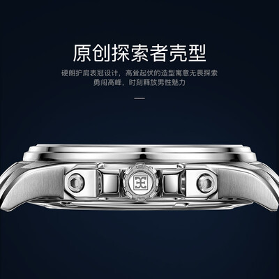 硬朗护肩表冠设计,立体感十足的造型,时刻展现男性沉稳干练。北极星与镂空针的结合,让你尽情探索时间的奥秘。