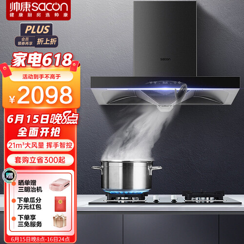 采用挥手感应,无需触控彰显科技感。拥有宽幅集烟腔,有效拢住油烟排烟彻底。能够一键干洗自清洁,无需加水使用便捷。