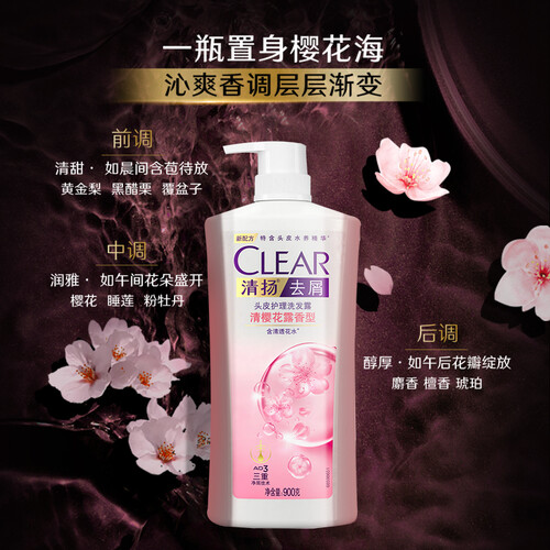 香氛灵感源自日本樱花臻品,香调层次渐变,净屑去油滋养头皮洗后发丝清爽;搭载革新留香技术,缓释香氛48小时让发丝绽放飘香。