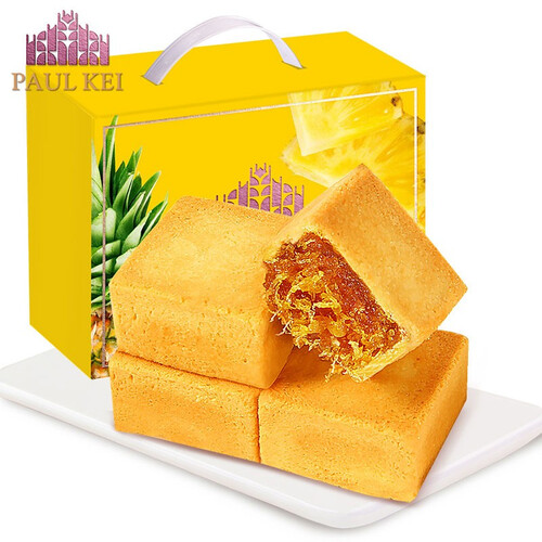 香甜可口的凤梨酥,金黄色的外表非常诱人,凤梨内馅,芳香四溢。采用不添加防腐剂、人工色素的配方,食用更加营养健康。