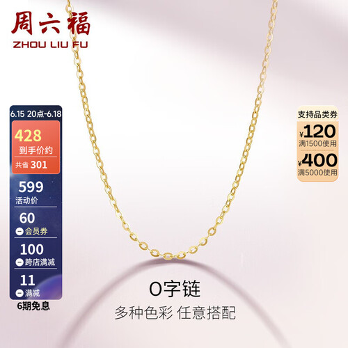 周六福 简约O字 K金项链