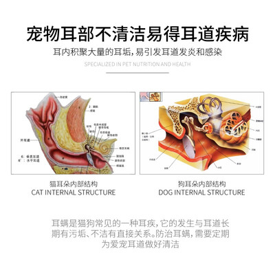 适合猫咪和狗狗使用,用途更加的广泛,更具有实用性。采用植物萃取的工艺,成分更加的温和,软化耳朵中的耳垢。
