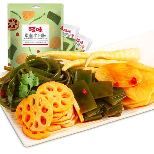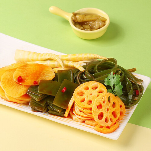 搭配海带丝、土豆片、笋尖等五种素卤蔬菜,食材新鲜嫩口。同时具备甜辣、香辣两种口味,口感脆辣酸爽,适合休闲时光享用。