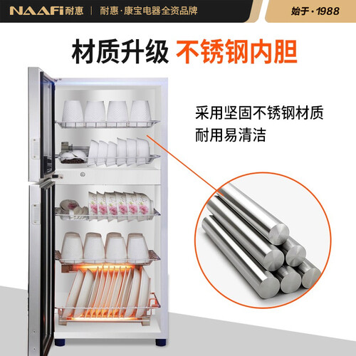 采用了五层的大容量柜体设计,便于分类存储餐具,使得收纳更为井然有序。而上下独立控制的设计,满足不同类型餐具的消毒需求。