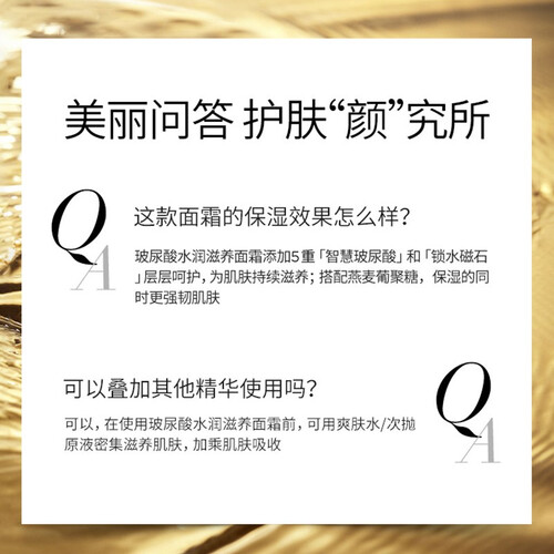 含有丰富的玻尿酸精华,快速吸收不油腻,加倍滋润肌肤起到很好的保湿效果。多种植物精粹,为娇嫩的肌肤撑起天然保护伞。