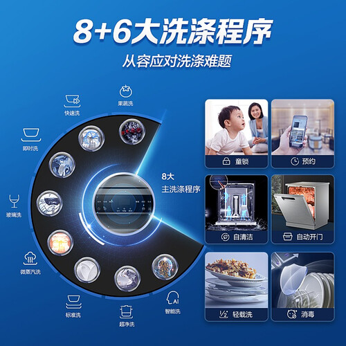 智能开门速干,温度适宜,避免出现烫伤。独嵌两用式设计,满足不同家庭的使用需求,支持WiFi智控,洗碗更加随心。