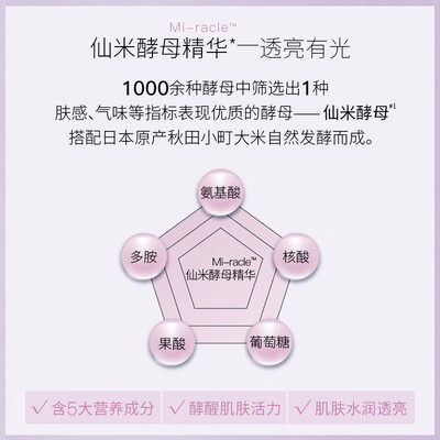 添加仙米酵母精华,能够深入肌肤底层,提高水分与营养成分的吸收。核心成分天然海藻糖,具有强大的保湿锁水功能,肌肤充满水润。