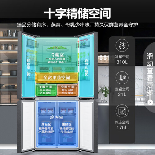 AI智能双净除菌,有效祛除细菌和异味,拒绝病从口入。搭载双循环系统,防止食材串味、风干,满足家人挑剔味蕾。