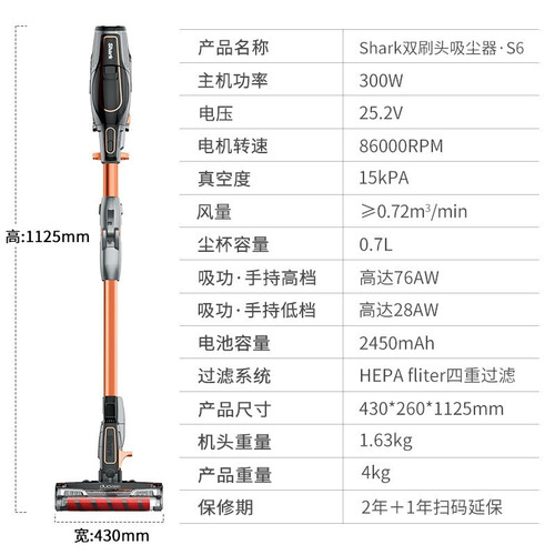 鲨客 双刷头设计 吸尘器