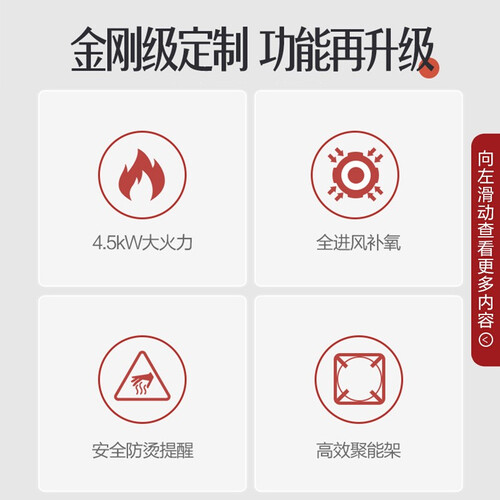 搭载双排多点高密度火孔设计,结合多通道混合燃技术,可以使得燃烧充分彻底,满足爆炒需求,轻松制作各种美味。