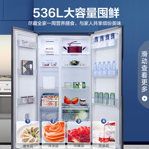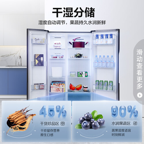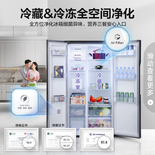 全空间四维净化,持久除菌、净味、除乙烯,保障食材的新鲜健康。全时双驱变频,运行稳定,控温更精准,延长食材的养鲜时间。