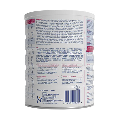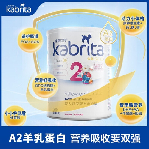 100%纯羊乳蛋白,小分子好吸收,减轻肠道负担。低敏羊乳酪蛋白,呵护敏感肠道。特别添加GOS,调节肠道促进吸收。