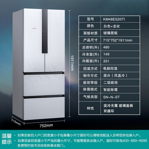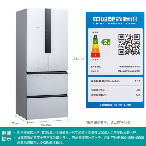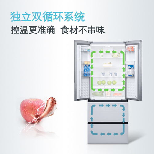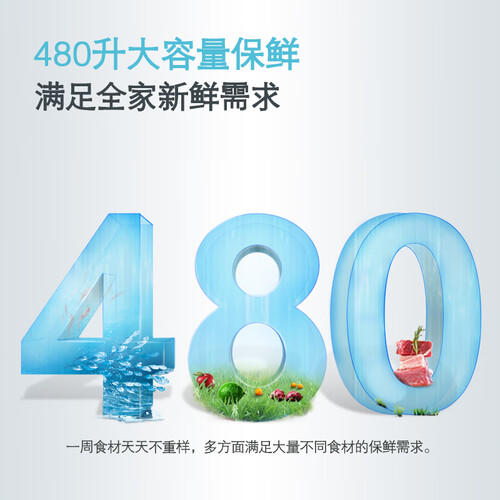 480升的大容量,搭配混冷无霜储存方式,间室互不干扰,有效防止串味。还可通过家居互联,通过手机随处掌控新鲜。