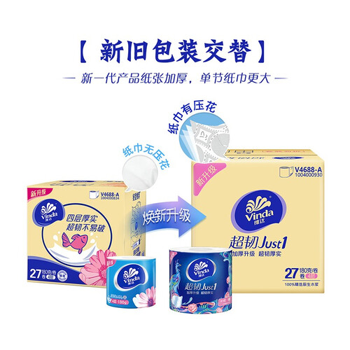 溶解度较高的卷纸,纸品可溶于水,不易出现堵塞马桶的问题。采用立体压花工艺制作,纹路清晰,柔软美观韧性强。