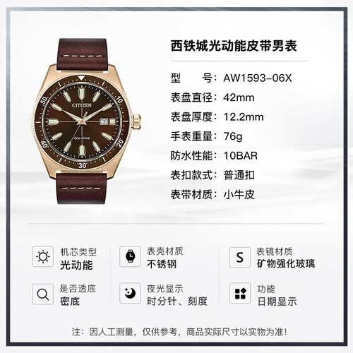 采用小牛皮表带设计,佩戴舒适柔韧,质感轻盈。具有夜光功能,更加方便夜间读取时间。