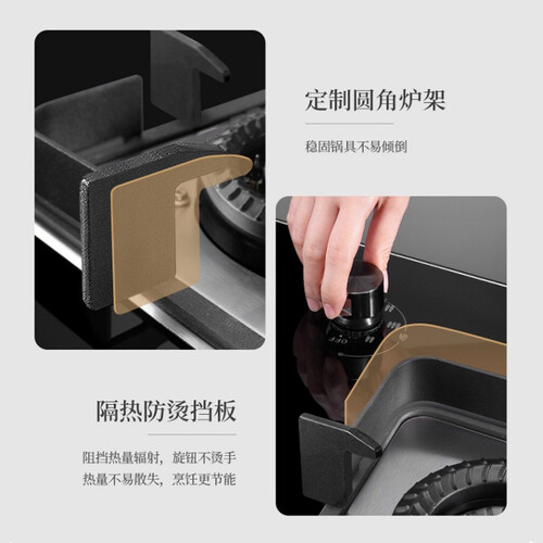 搭载隔热防烫面板,让您在烹饪时无需小心翼翼,双手触碰也没关系。选用120mm大炉头,大直径锅具也能用,不受面积限制。