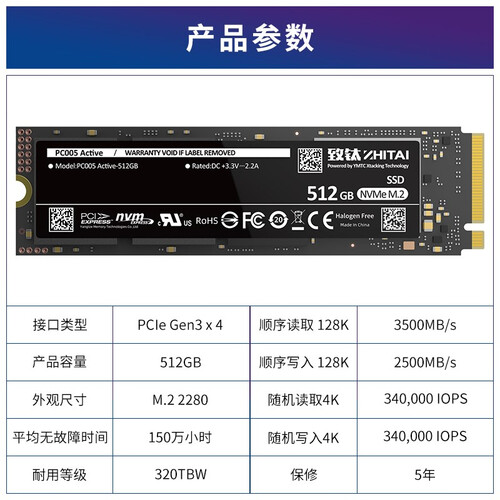 致钛SSD固态硬盘,智能SLC缓存技术,模仿用户的使用情况,持续保持缓存状态。智能功耗管理技术,调整发热量和发功耗。