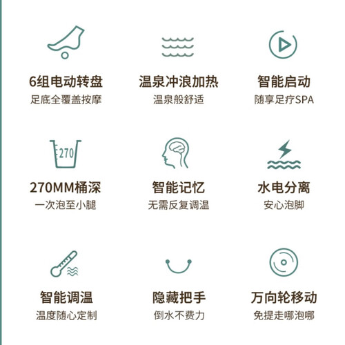 270毫米加高桶身,可以覆盖小腿部分,帮你缓解小腿和足部疲劳。水电分离的结构处理,告别漏电混电隐患,安心泡脚更安全。