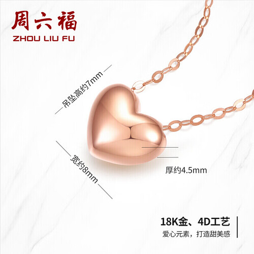 周六福 浪漫爱心K金项链