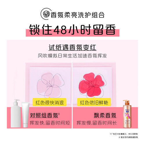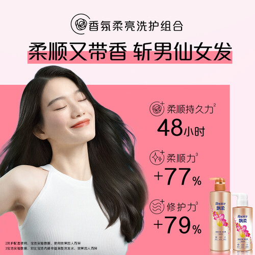 甜而不腻的花果香,清新好闻,持久留香,让你一整天都有好心情。洗护后头发柔顺有光泽,时刻都是精致女孩。