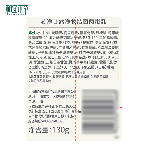 相宜本草 芯净自然保湿护肤套装