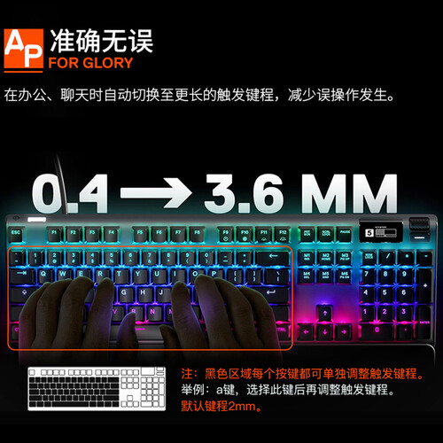 支持可调节触发键程,可根据自身的打字喜好灵活选择,操作便利。强大的免驱动设定,无需复杂的安装步骤,使用轻松。