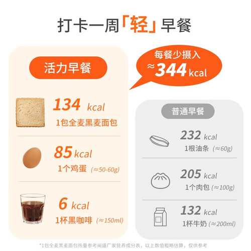 蕴含了丰富的膳食纤维,饱腹感强,非常适合作为代餐食品。面包中不含有脂肪含量,热量更低,不用担心容易长胖的问题。
