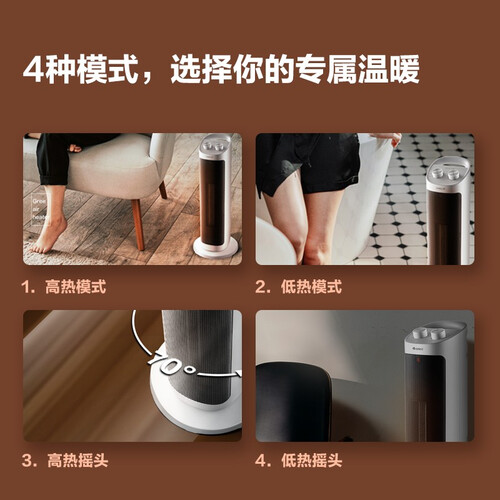 拥有两挡功率,可以根据不同人群和环境的取暖需求进行调节。并拥有70°广角摇头,可以为不同角度进行供暖,送风更舒适。