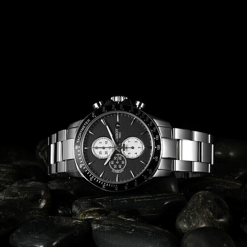 天梭 黑盘钢带 瑞表