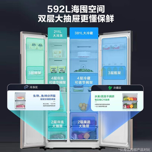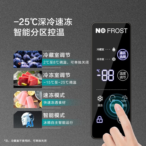 配备立体双风幕系统,能够有效防止冷气的泄漏。带有深冷速冻模式,可以牢牢锁住食材营养,使其口感更为鲜美。