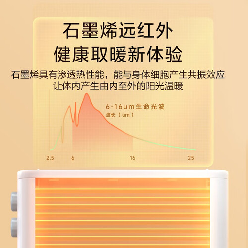 立体对流循环加热,整屋升温,快速享受温暖空气。选用的纳米石墨烯发热体,升温迅速且健康舒适。