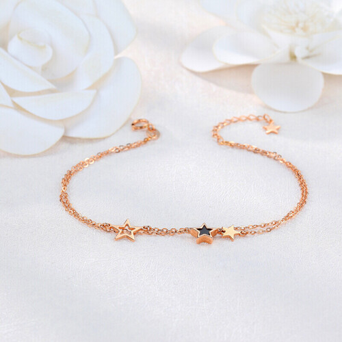 采用双层链的设计,具有加强的时尚感,整体更显饱满大气。尾链延长的设计,搭配星星吊坠,别致新颖,设计感强。