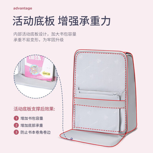 包身采用防泼水面料制作,耐用耐磨,日常打理方便实用。轻量化设计,背负轻松耐用,带有警示反光条,贴心守护孩子的出行。