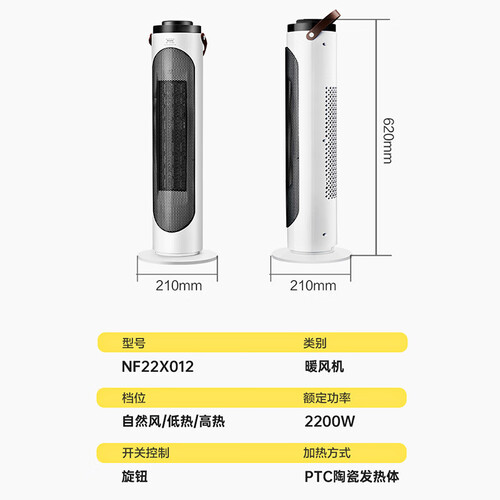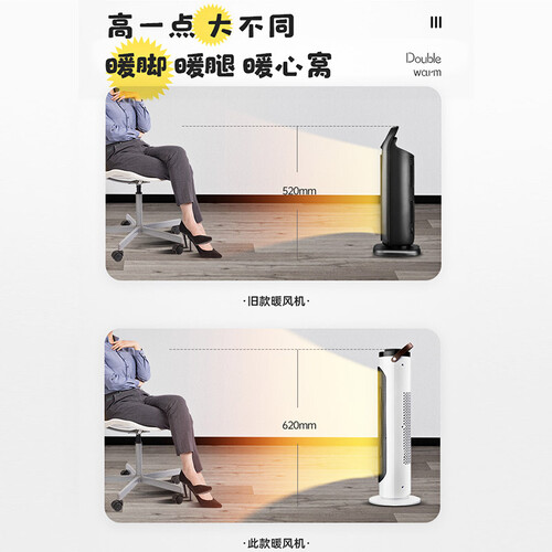 内置PTC陶瓷发热体,升温时间更快,让你温暖整个冬天。搭配双直流电机,坚固耐用的同时节能省电,不会产生噪音。