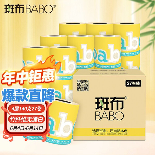 斑布 亲肤无刺激本色卷纸