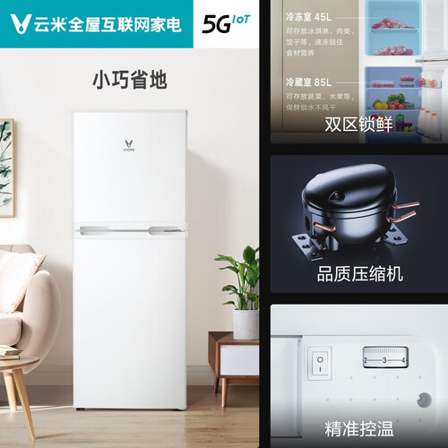 130L空间,满足日常储鲜需求,小户型使用无忧。低噪音设计,冰箱运行时几乎感觉不到声音,放在卧室也能hold住。