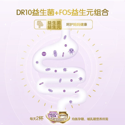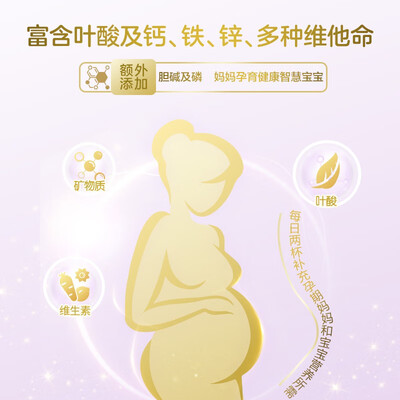 采用健康的低脂配方,可以帮助孕妈在孕期的体重管理。添加了胆碱成分,满足母体和胎儿成长需求。益生元组合,助力消化和吸收。