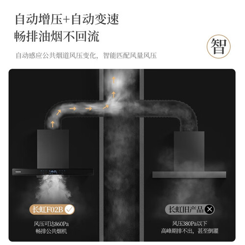自动增压变速,智能匹配风量和风压,让油烟无处遁形。红点防烫系统,温度过高时会提醒用户,防止用户被烫伤。