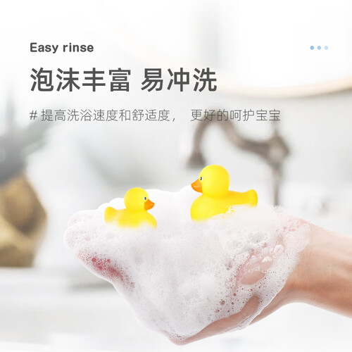 拥有丰富的泡沫,提高洗浴速度和舒适度,更好呵护宝宝,采用无泪的配方,不刺激宝宝幼嫩的眼睛,温和洗净。