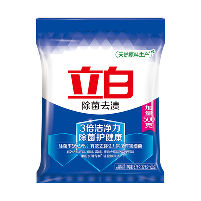 这是一款除菌的家用洗衣粉,有三倍的洁净力,能更好去除衣物上的细菌,守护家人健康,内含百合花芳香因子,能去除衣物上的异味。
