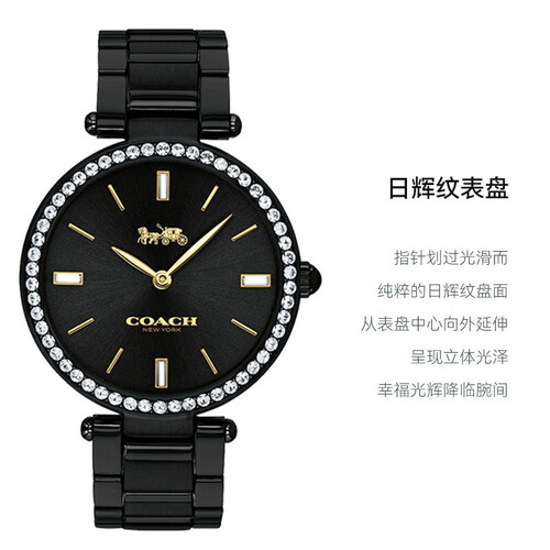 施华洛世奇水晶镶嵌表圈,自带闪耀光泽,结合马车标志,流露现代女性多元的自信时髦魅力,且3ATM生活防水,无惧溅水。
